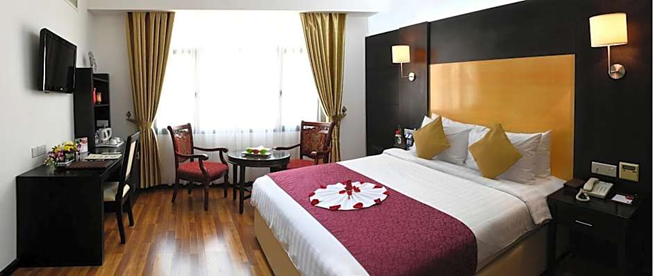 Deluxe is 215 square feet and includes a king-size bed 150-183 width.